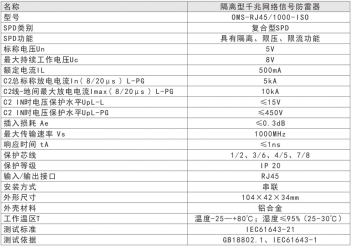 歐姆雷盾(omrdon)隔離型千兆網絡防雷器(1000M網絡電涌保護器)依據 IEC61000-4-5及 ITU-TK20&K21標準設計,該產品用于LPZ2- LPZ3分區界面的RJ45接口上,可廣泛應用于辦公和工業場所網絡綜合布線及類似用途的數據通訊系統中,保護1000M以太網計算機、服務器、交換機、路由器等網絡設備;適用于六類布線系統的SWITCH、HUB、ROUTER和計算機等網絡設備的雷擊或其他電涌保護。