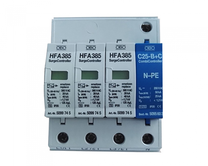 OBO浪涌保護器HFA-385/3+NPE拔插設計,可以帶電更換,易于維護;
